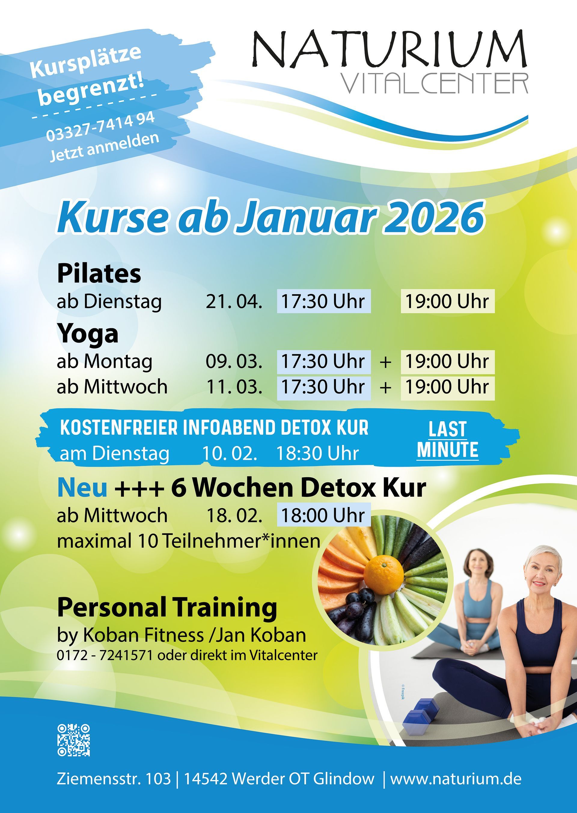 Sehen Sie sich eine Übersicht unserer Angebote im Vitalcenter Naturium an.